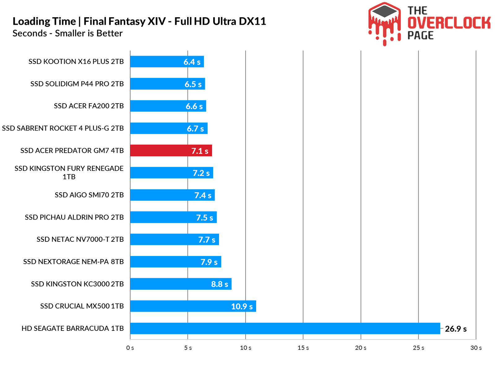 In game loading times, there is no significant difference between NVMe SSDs; it’s just a matter of a few seconds.