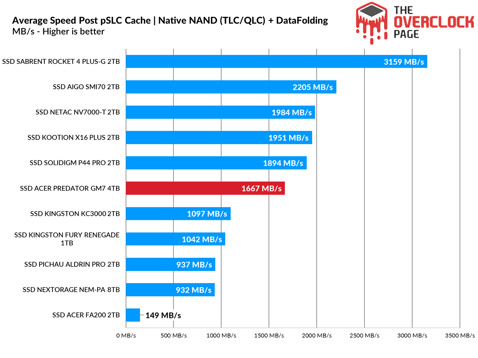 Overall, accounting for both the folding and native states, it achieved an average speed of 1667 MB/s, surpassing other Gen4 SSDs of 1TB and some 2TB models.