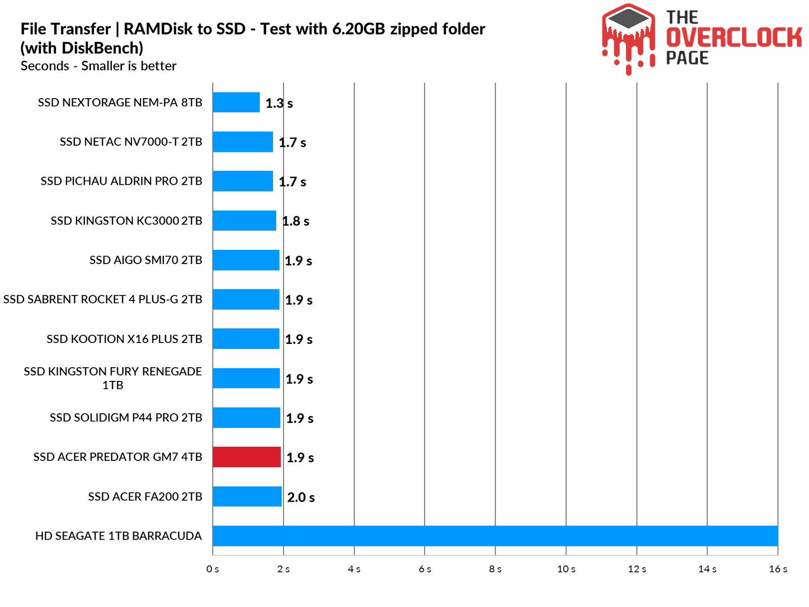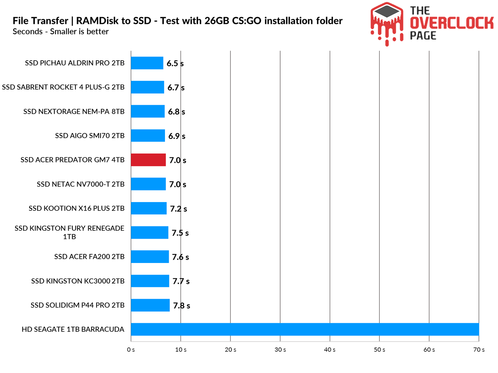 Now, with a larger folder of files, we were able to see that it outperformed other SSDs, achieving a tie with its sibling, the NV7000-T, which has the same hardware as this SSD.