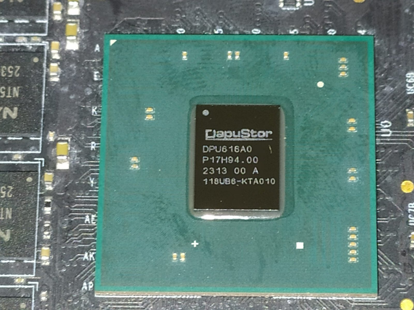 This series includes two versions: the DPU608 and the DPU616. The primary difference between these controllers is the number of available NAND flash channels. As the names imply, the DPU608 has 8 channels, while the DPU616—which is used in the model we’re testing—has 16 channels.