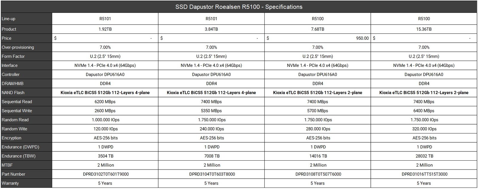 CURIOSITIES ABOUT DAPUSTOR ROEALSEN5 R5100 7.68TB