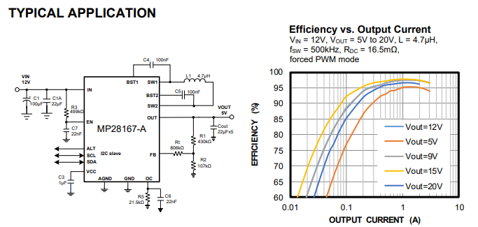 In the right image, we have another component also from M.P.S., which is the main PMIC for this project. It supports operation with up to 32V, providing peak currents of up to 6A at the input with integrated MOSFETs of 14m?.