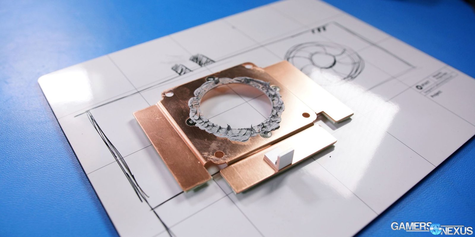 As the first test was successful, the next step was to move forward with manufacturing the bases for the VRM heat sinks using the same 1.5mm copper plate used for the GPU.