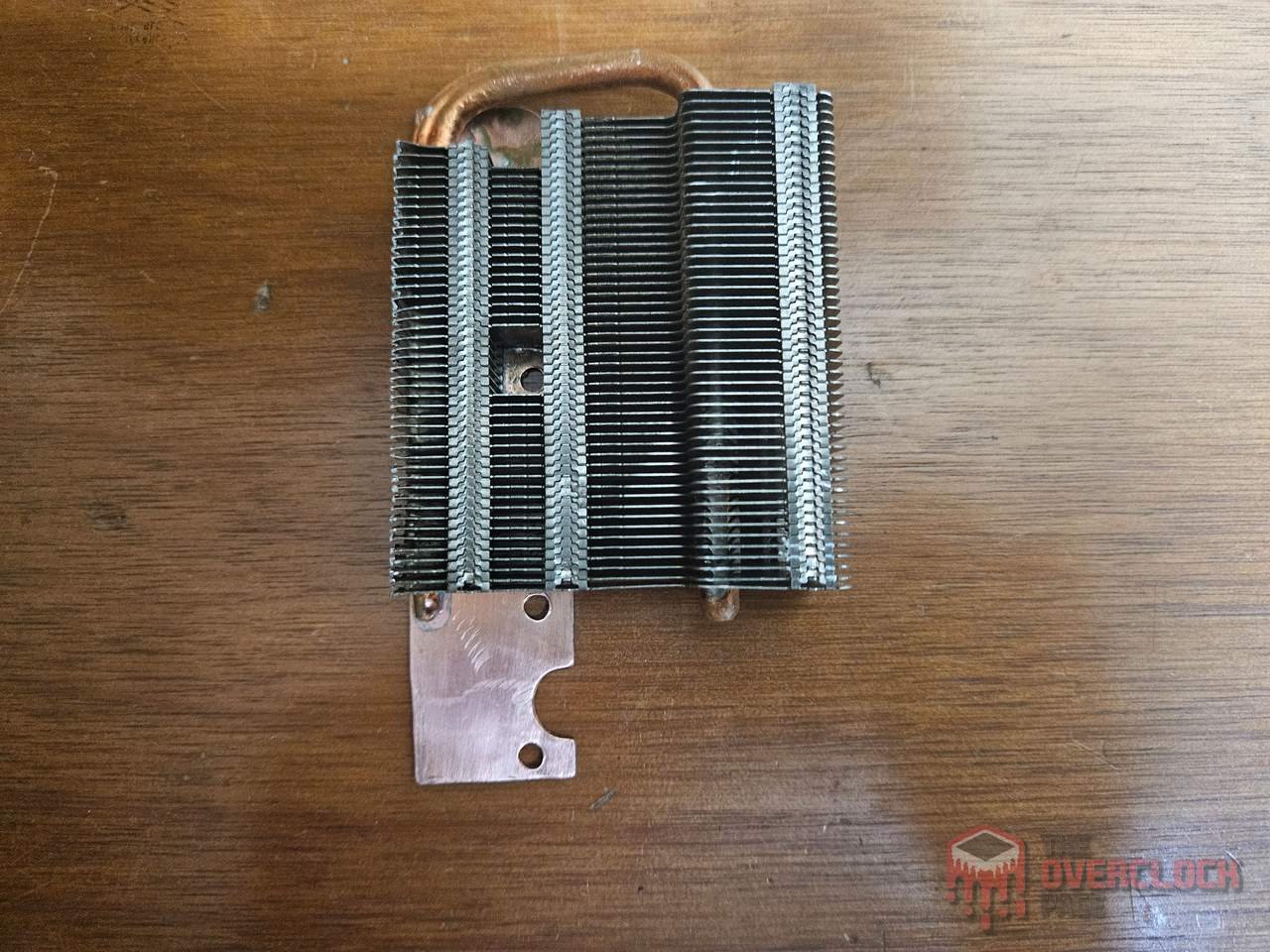 The solution involved sourcing materials from scrap. After extensive searching, I managed to find the heatsink from my old Palit RTX 580, which was clearly too large for this purpose. It required disassembly, removal of its original base, desoldering of the heatpipes, and some hacking to resizing the heat sink.