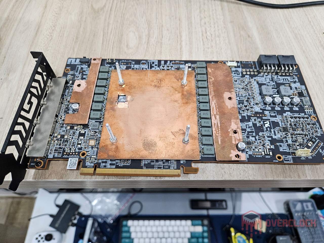 This solution prioritized simplicity by avoiding the need to modify the block’s base with soldered protrusions and also by not requiring the cutting of the 1.5mm plate. However, it adds thermal resistance between the GPU and the block’s base, resulting in slightly higher temperatures, estimated at around +2°C compared to direct die contact.