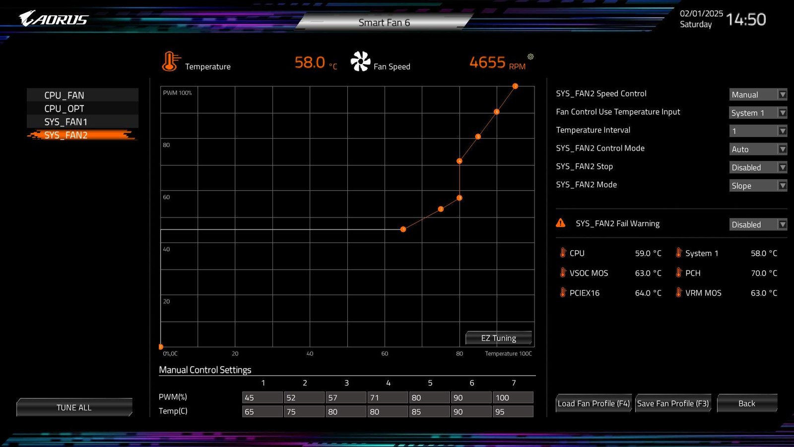 Below you can see how the adjustment turned out, remembering that this motherboard uses Tctl reading as the basis for curve operation.