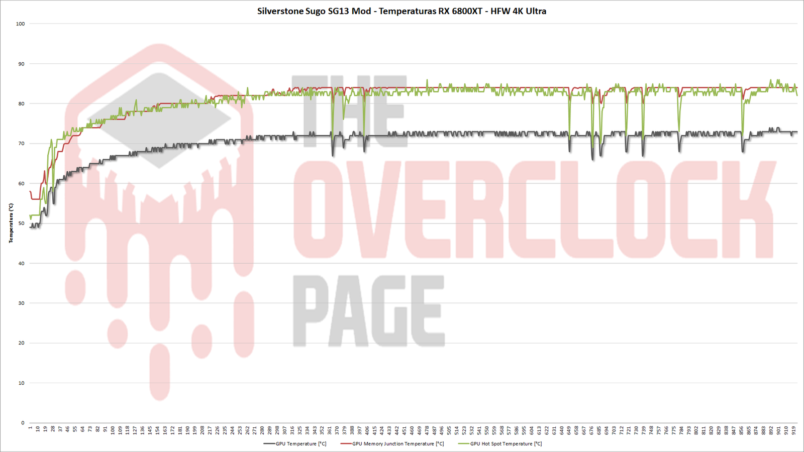 Regarding its temperatures, the GPU peak was 73ºC, VRAM at 83ºC, Hot Spot at 85ºC, while the VRMs were near 78ºC.