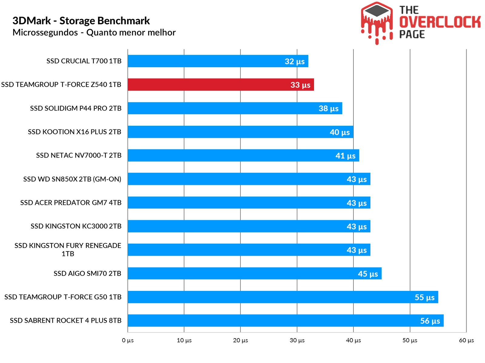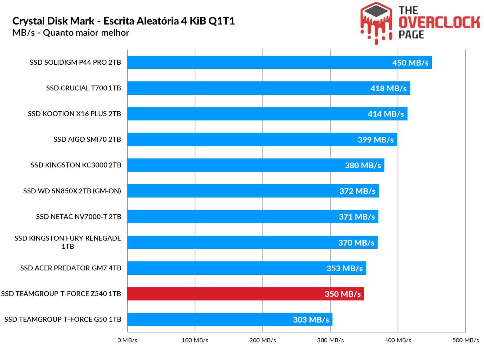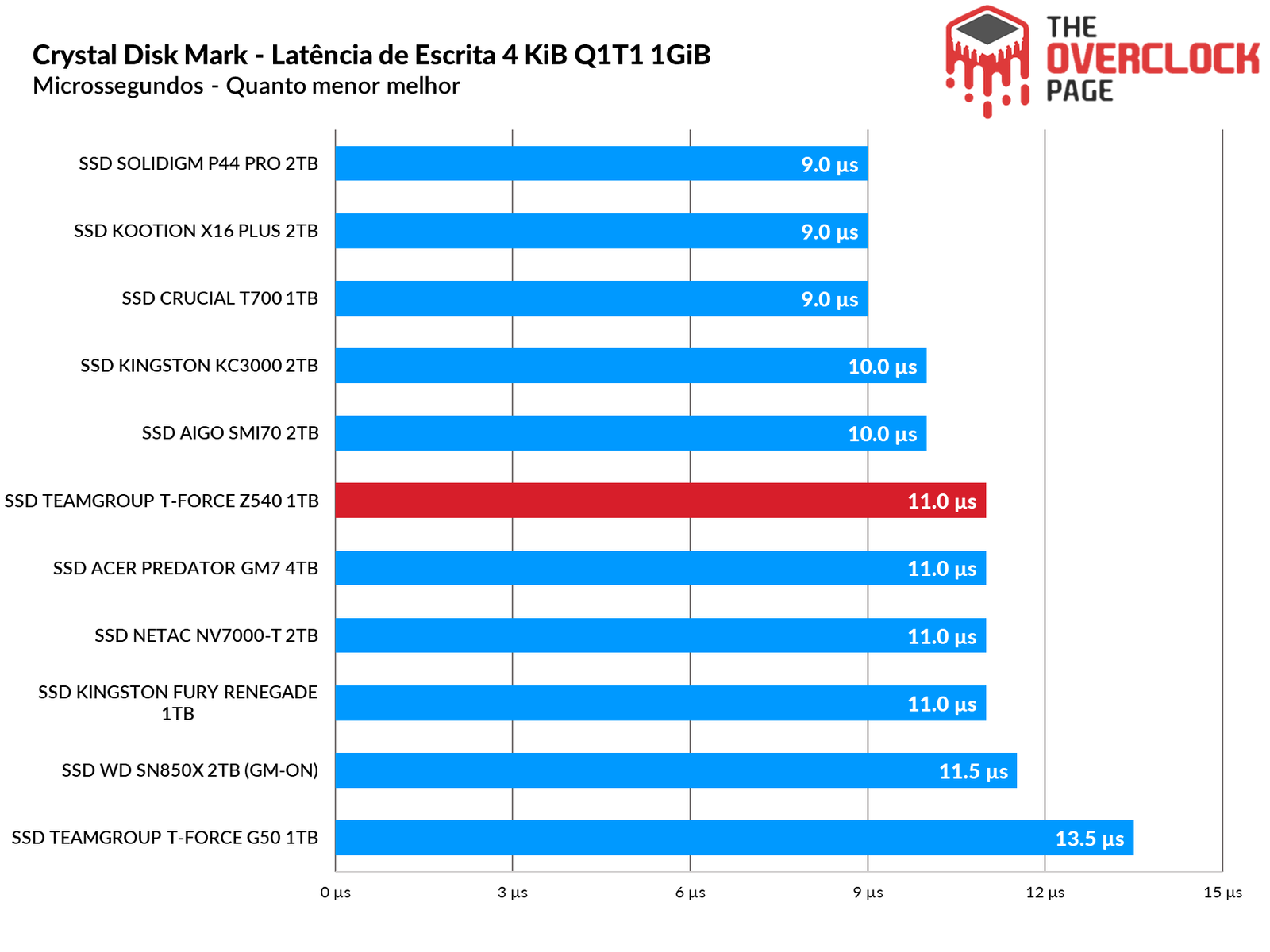 Ambas as latências do T700 e do Z540 foram semelhantes como já explicamos anteriormente, porém em sua escrita eles não foram tão bem quanto o Solidigm P44 Pro, que ainda reina supremo como um dos Gen4 de melhor desempenho.