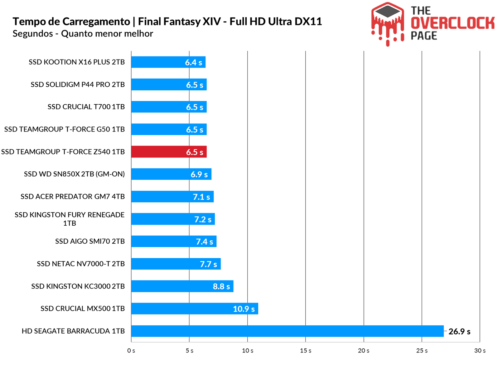 Aqui temos uma comparação entre múltiplos SSDs e um HD, utilizando uma instalação limpa do Windows 10 Build 21H1 junto do benchmark do Final Fantasy XIV abrindo o modo campanha. O teste consiste no melhor resultado após três boots seguidos do sistema, considerando o tempo total até finalizar na área de trabalho com o score informado pelo aplicativo, por isso, é mais lento do que o boot até mostrar a tela da área de trabalho.