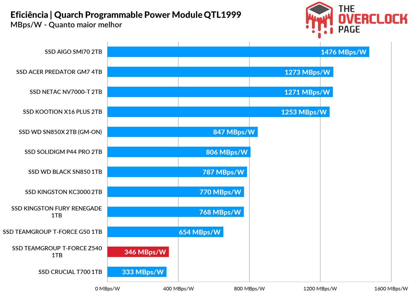 E como já era de se esperar de sua eficiência, novamente nos deparamos com outro SSD Gen5 extremamente rápido, mas com baixa eficiência.