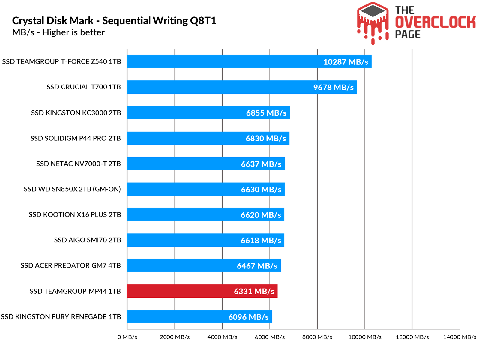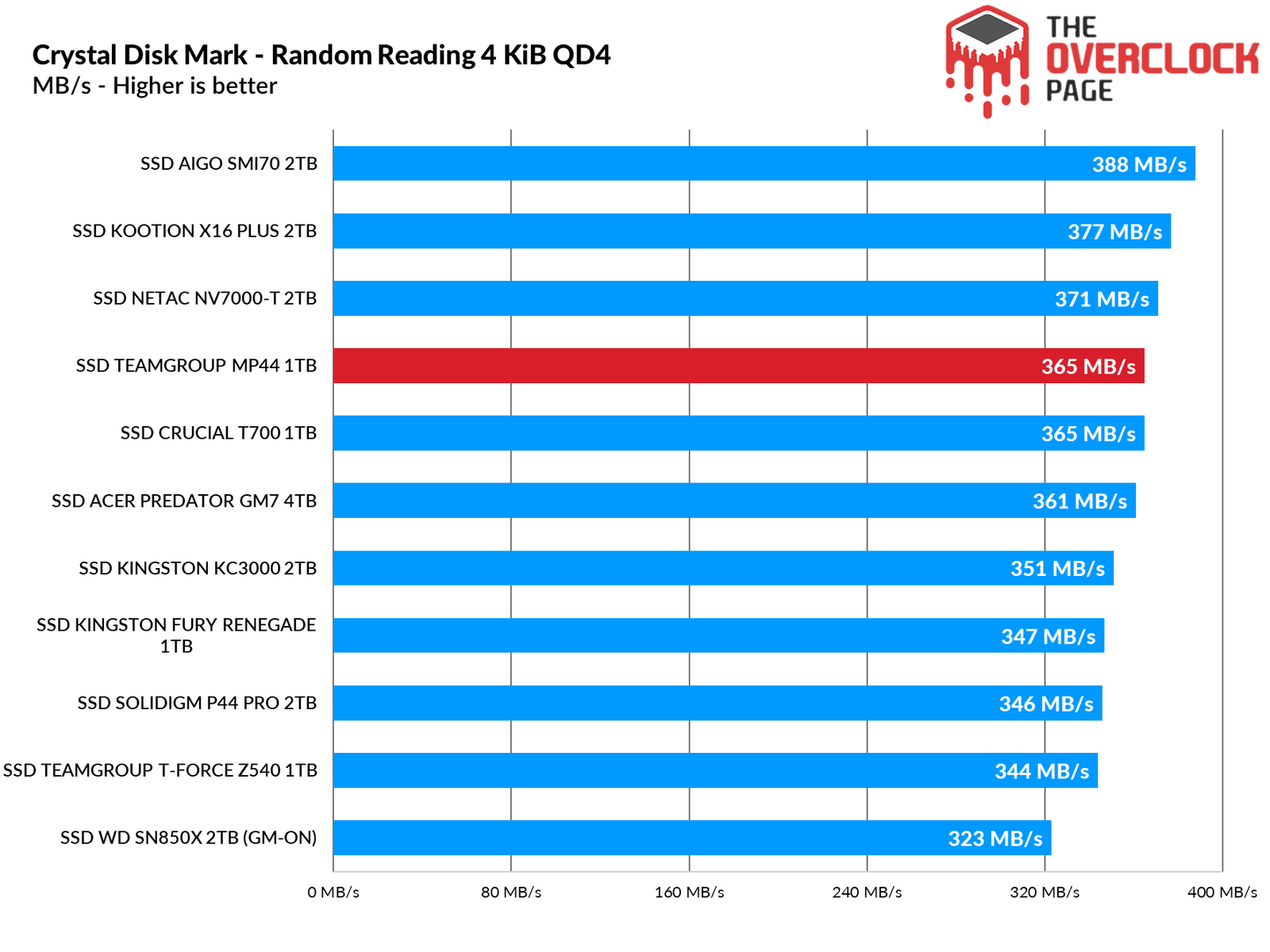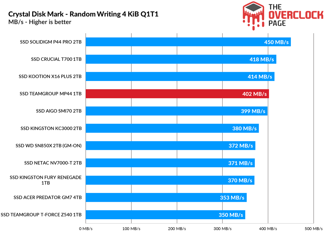In this other test, which is slightly older and more focused on productivity with a higher write demand, the MP44 ranked between the AIGO SMI70 and the SN850X.