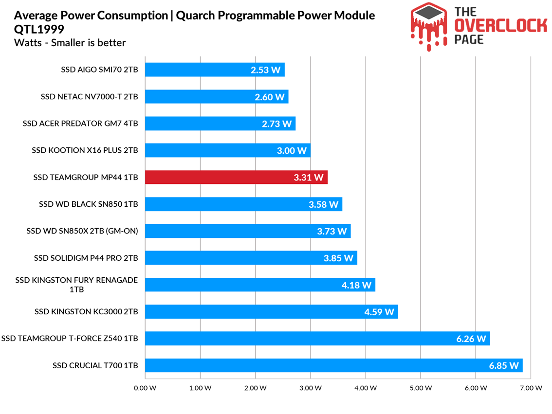 On average, its power consumption was slightly higher than other SSDs with the same controller, but still a good result.