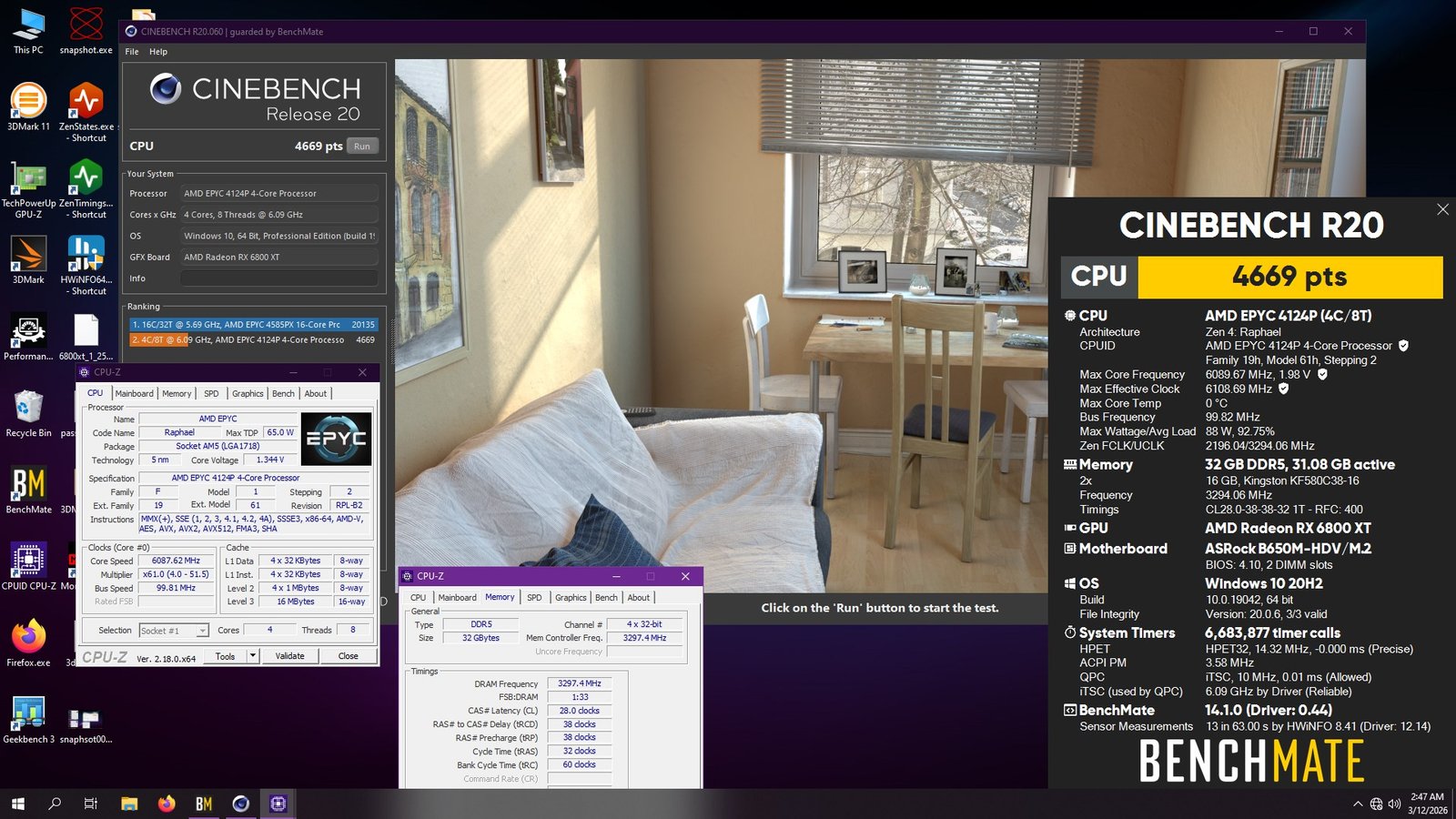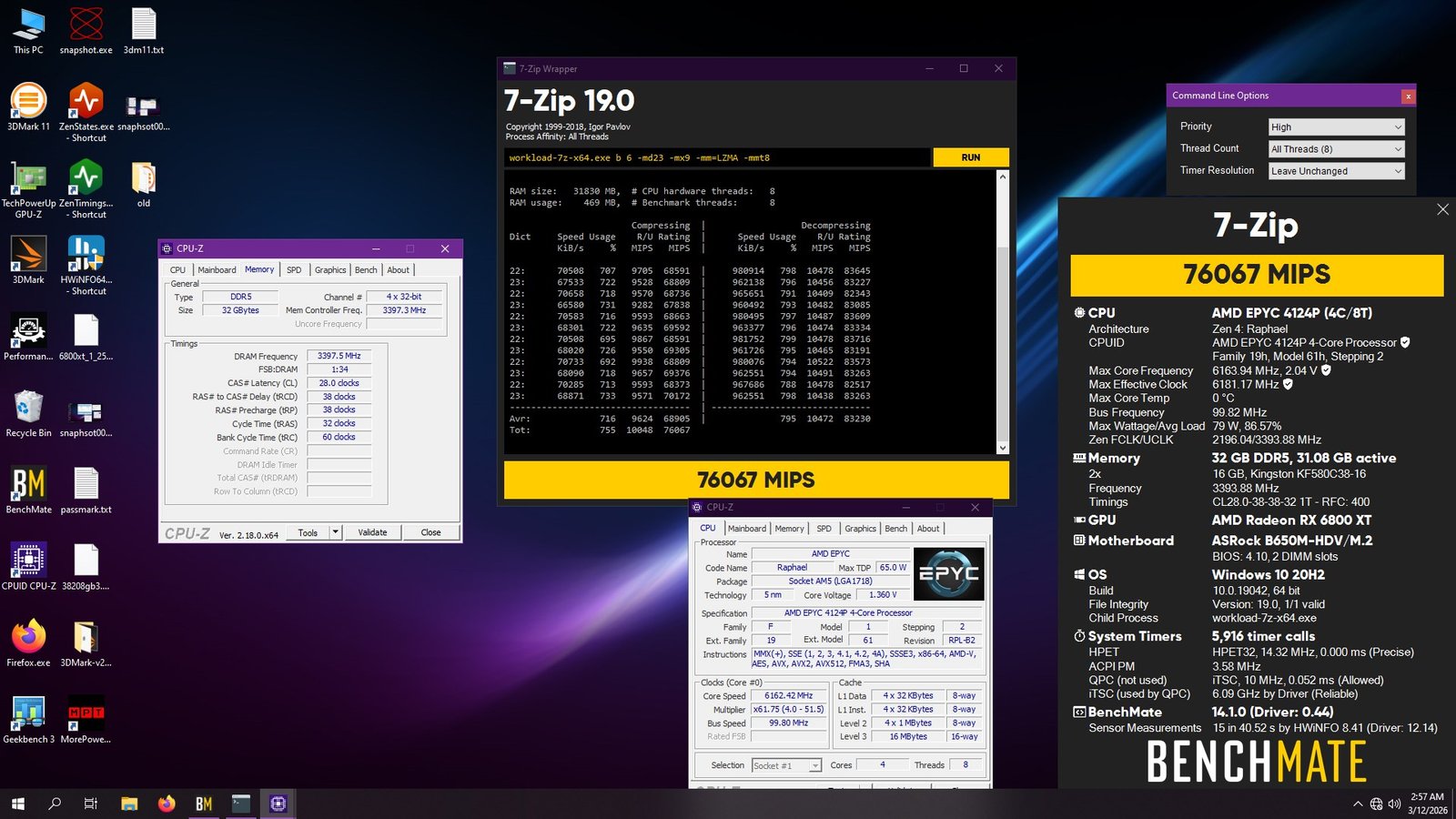 O primeiro a ir para o gelo foi o 4124P, o qual finalizou os benchmarks com frequências entre 5900 e 6200 MHz e tensão de até 1.34V, a depender do benchmark, o que é excelente apenas para gelo seco! Além disso, ele foi bom para rodar a memória em até 6800 MT/s CL28 no modo 1:1 e isso com apenas 1.3V no VDDSOC.
