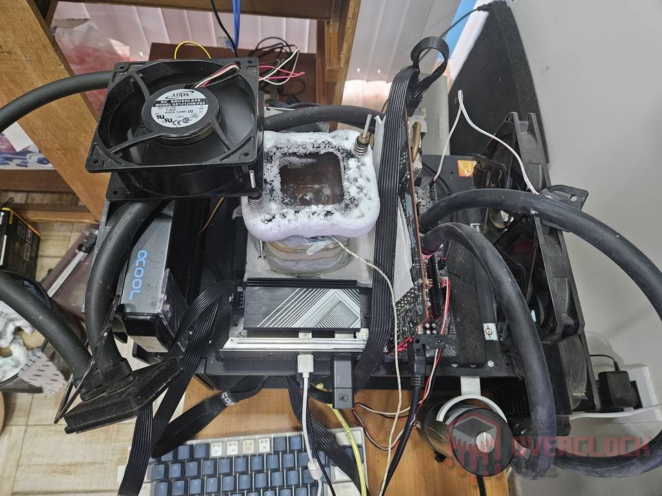 Por fim, a tradicional foto do hardware todo congelado, algo que nunca pode faltar em um post sobre overclock extremo!